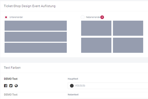 Passen Sie Ihren eigenen Ticketshop nach Ihren Farben und wünschen an. Implementieren Sie Ihr Logo und Ihre Socialmedia Accounts.